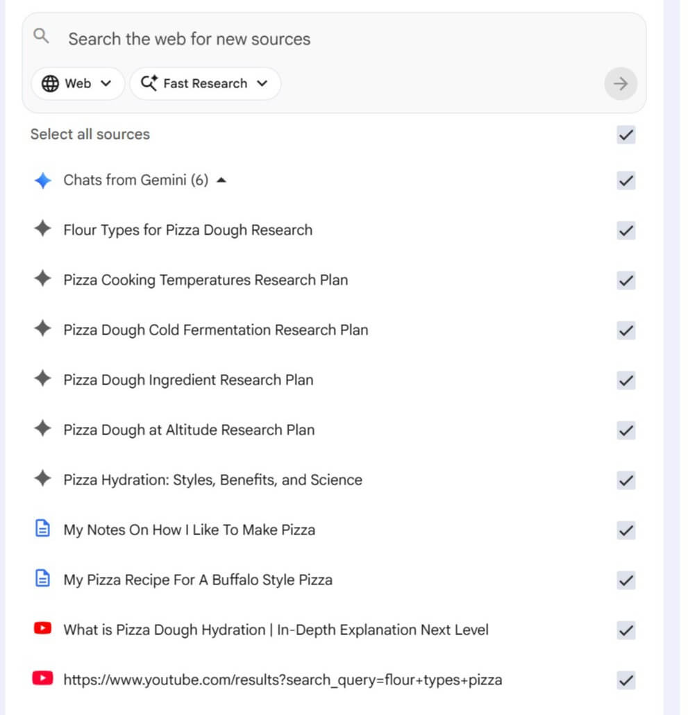 The final source I added to our database was essentially a direct brain dump. I simply spoke into a microphone and recorded a detailed walkthrough of my entire personal process for making dough, explaining exactly why I use certain techniques over others. This step is critical because I want the Gem’s final instructions to be completely personalized to the way I believe pizza should be made. We aren’t here to generate generic, run-of-the-mill recipes that anyone can find on a standard cooking blog. By feeding the system my own spoken methodology, we ensure the final output reflects our strict standards and preferences.