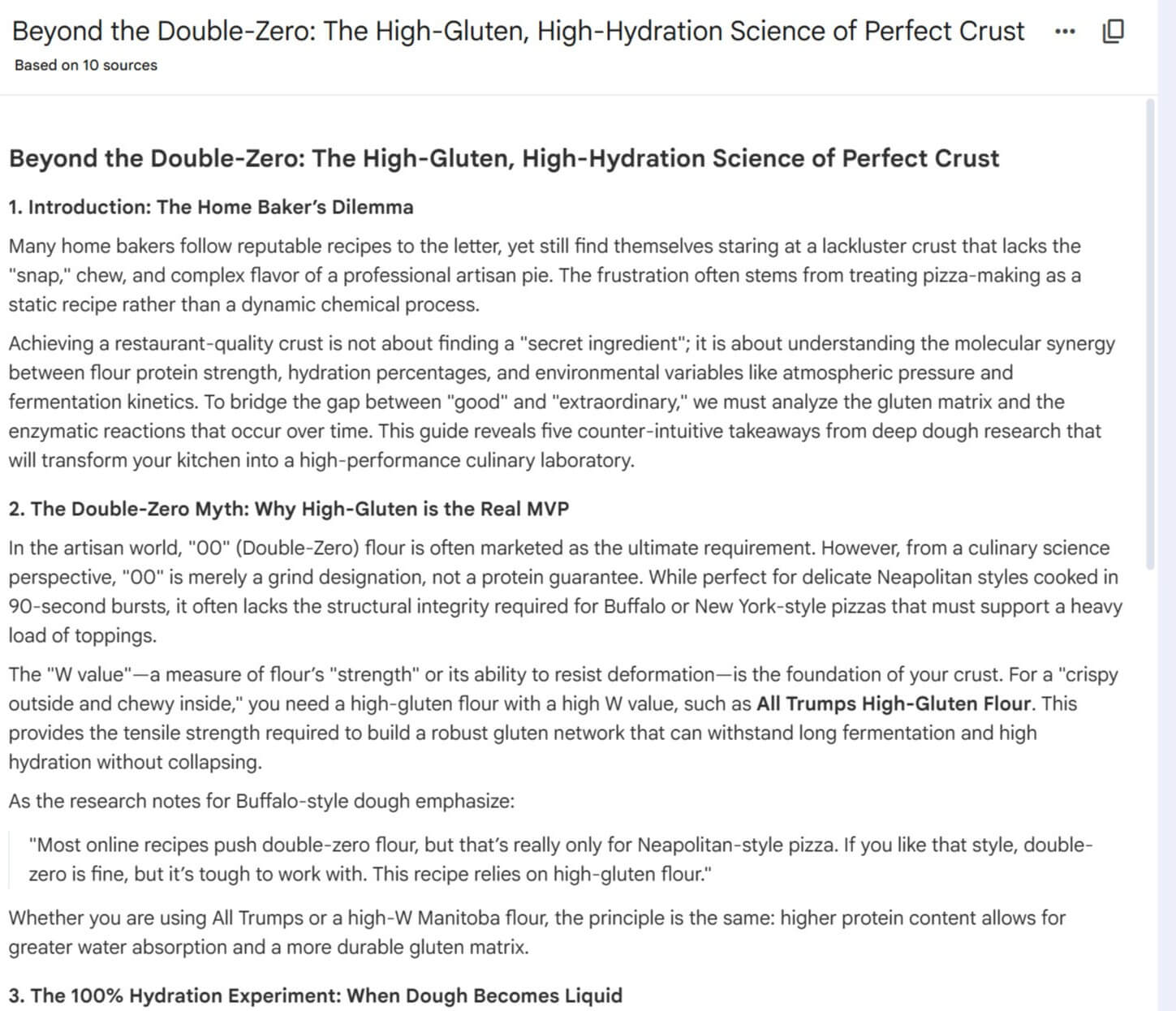 First things first: I ran a Google Gemini Deep Research prompt on a few variables I know are absolutely critical to making a good pizza dough. But here is the key—I deliberately interjected my own opinions and expertise into the research process. I wanted the findings to be framed around the way I believe these topics should be handled.