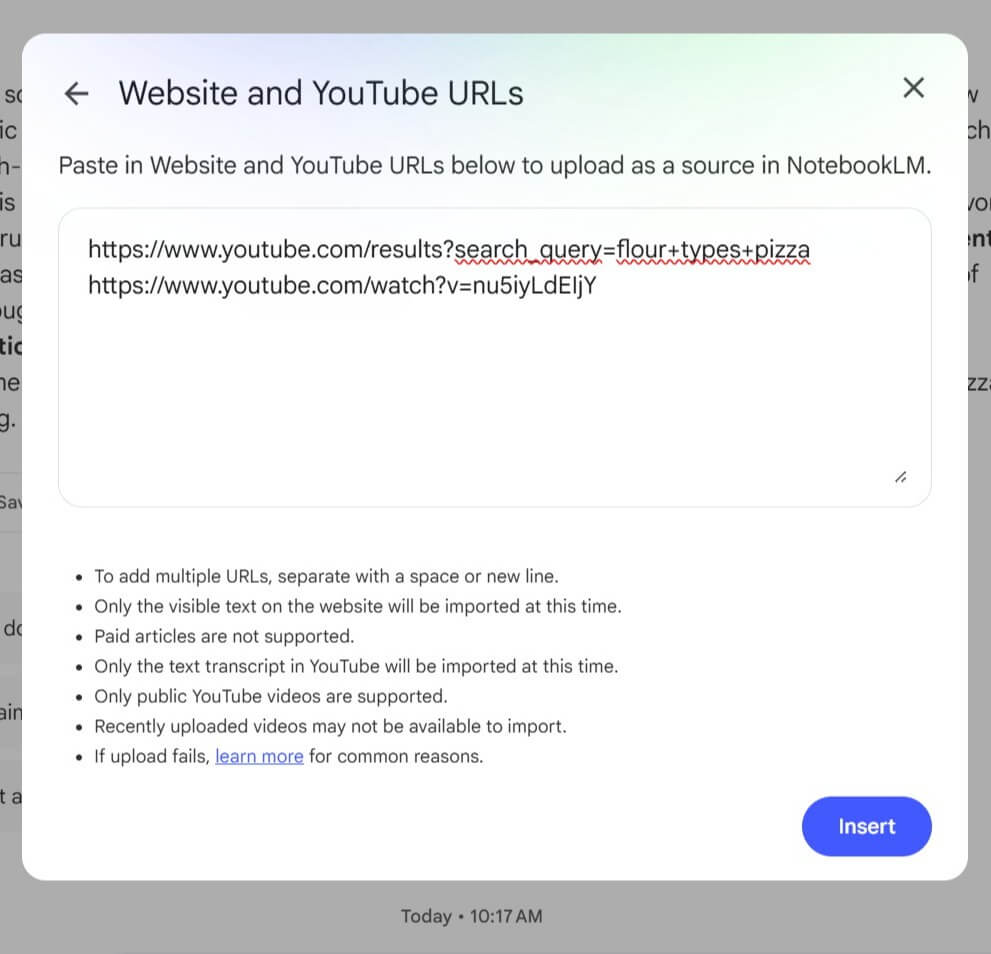 For our dough calculator, I found two specific videos that do a phenomenal job explaining hydration percentages and flour types. More importantly, I completely agree with the methodology they teach. I copied both of those links, pasted them in, and hit Insert.
